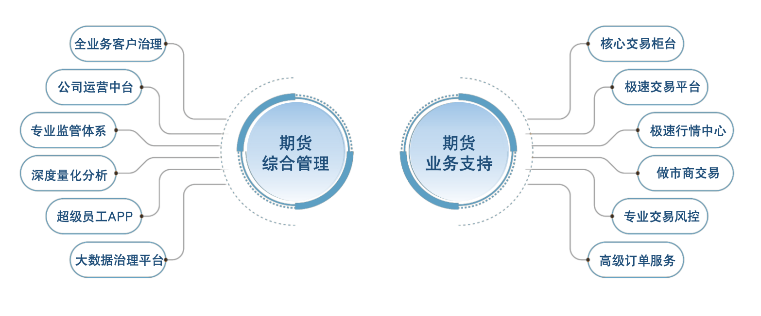 应用覆盖中国金融期货交易所、上海期货交易所、大连商品交易所、郑州商品交易所、广州期货交易所等全业务品种。提供期权交易、期权做市交易、期权极速交易、客户经营、营销服务、业务运营等全面产品解决方案,助力期货数字化转型。在期货领域实现全市场、全品种的全业务覆盖,并在个股期权交易、营销服务等领域处于市场领先地位。